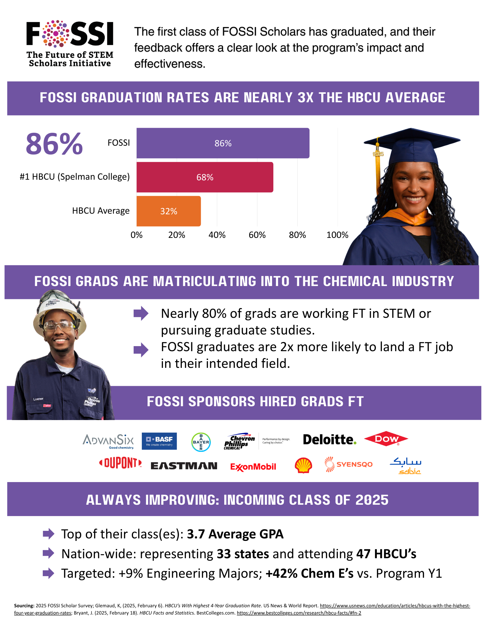 FOSSI is made possible by the American Chemistry Council (ACC), the American Institute of Chemical Engineers (AIChE), Chemours, and HBCU Week Foundation. Learn more about FOSSI leadership.